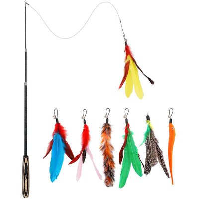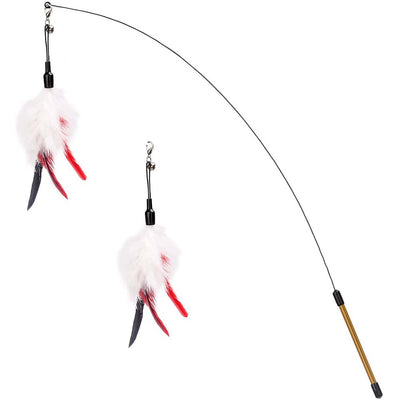 - 🐟 【 All-New Upgraded Telescopic Rod 】:The cat wand is retractable from 16.3 in / 41.5 cm up to 41.3 in / 105 cm, different rod length helps your cats to flip, jump, pounce, chase and prowl this feather teaser toy.